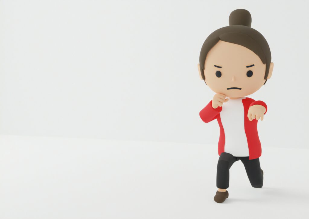 パンチは右手の平が下を向きますが拾おうとすると右手のひらが上を向く自分の顔を向くようになります。